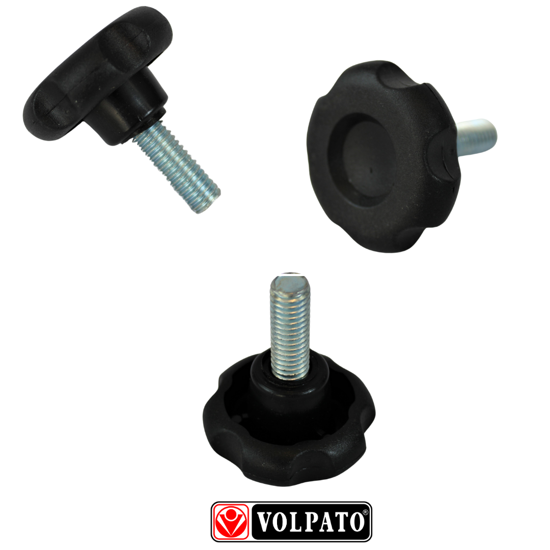 O manípulo macho é injetado no material Polipropileno (PP) injetado com parafuso de aço. Na Volpato é utilizado para fixação no pedestal de apoio das carretinhas/reboques.